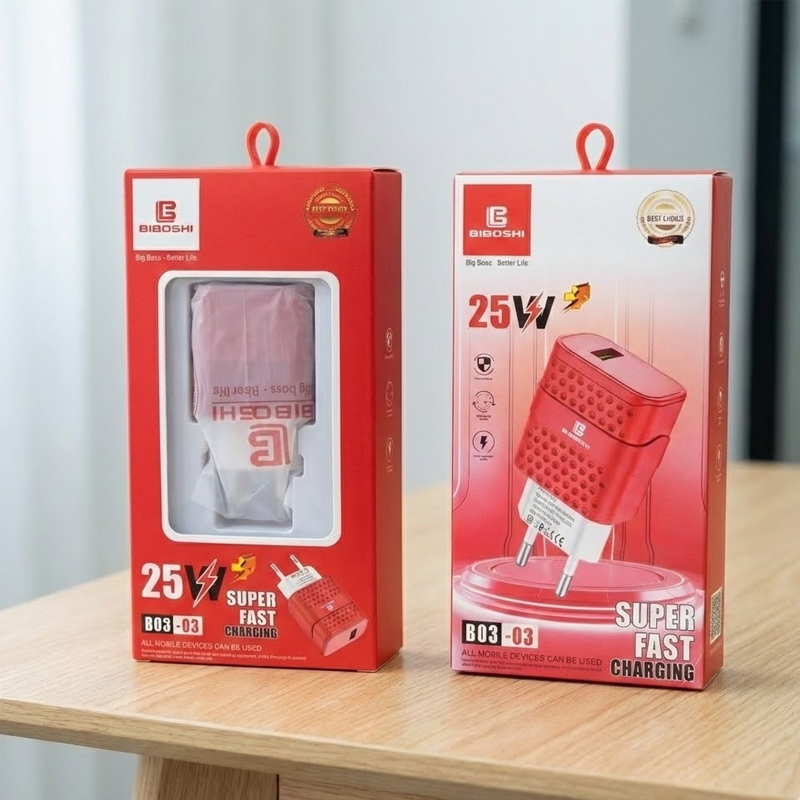 Maximize your charging efficiency with the Biboshi B03-03 25W Super Fast Charging Wall Adapter. Engineered with advanced Power Delivery (PD) 3.0 and PPS (Programmable Power Supply) technology, this adapter provides up to 25W of power, making it ideal for rapidly charging the latest Samsung Galaxy devices, iPhones, and other USB-C compatible smartphones.