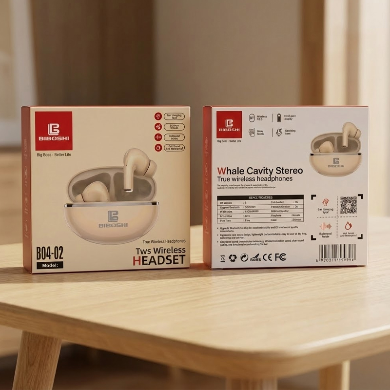Dive into a deep ocean of sound with the Biboshi B04-02 Whale Cavity Stereo True Wireless Headphones. These earbuds feature a specialized "Whale Cavity" acoustic structure that enhances sound resonance, delivering powerful bass and an expansive soundstage that brings your music to life.